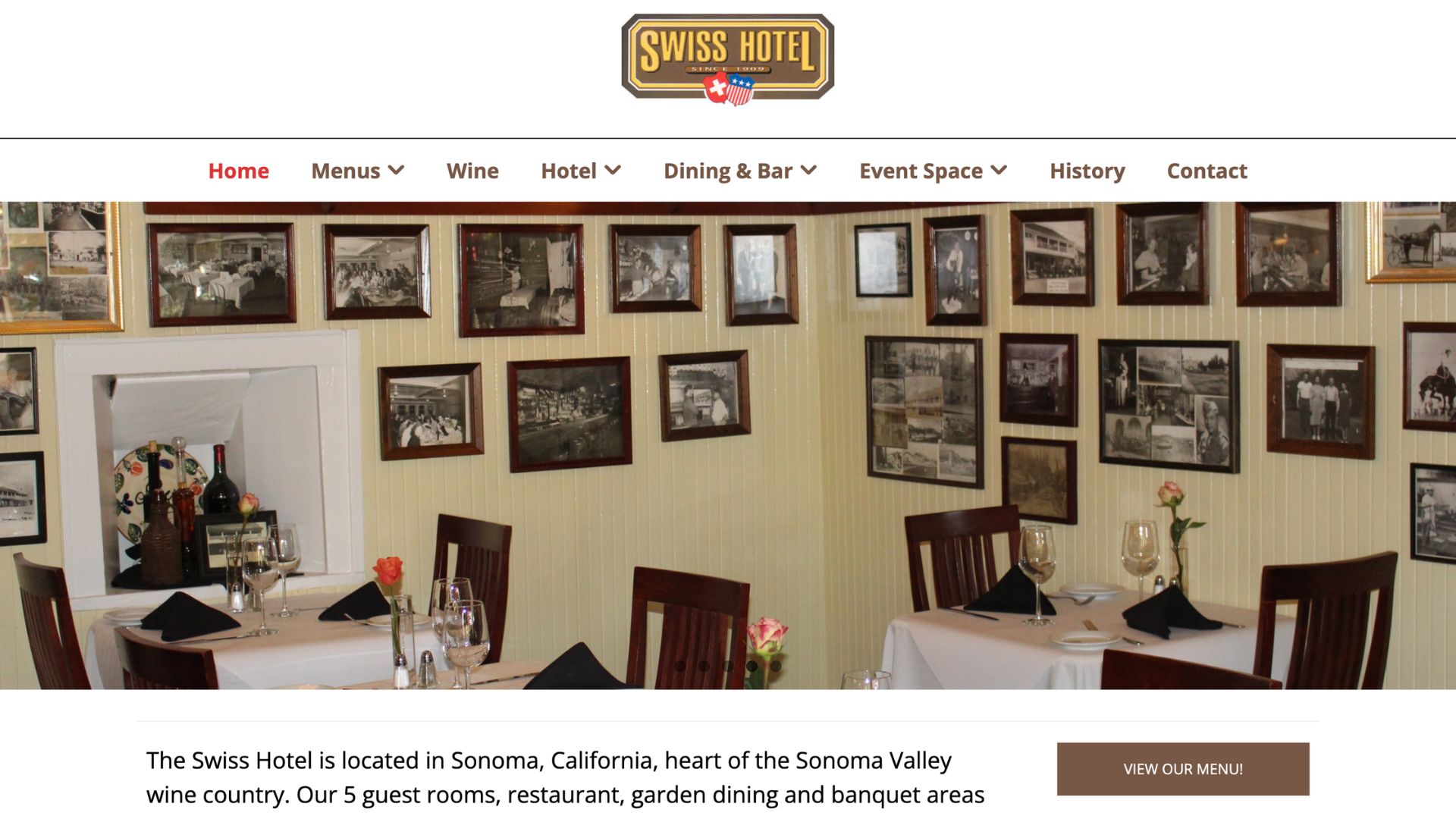 The Swiss Hotel is located in Sonoma, California, heart of the Sonoma Valley wine country.